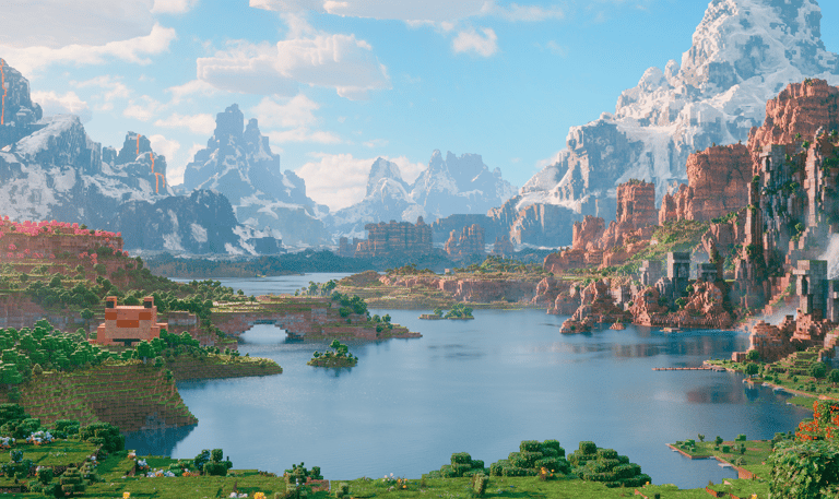 Explore construções incríveis e jogue Minecraft com seus amigos.
